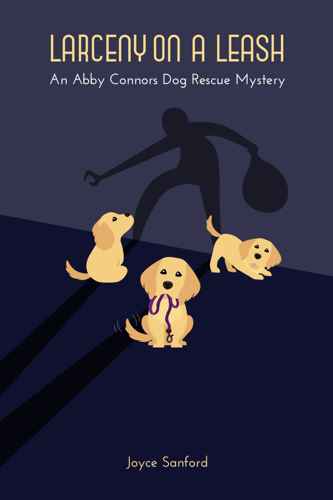 Joyce Sanford’s long involvement in golden retriever rescue sparked her creative side, first with the children’s book, Goldenlocks and Her Three Homes, followed by her adult mystery novels, Death by Doggie Door and Larceny on a Leash.